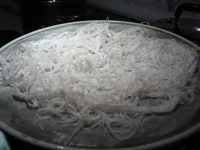 Nước sôi ngập bánh hỏi (ngâm 1 phút 15 giây)